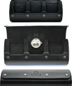 Luxury Travel Watch Case – Sleek 3-Watch Organizer in Black Vegan Leather $80.00